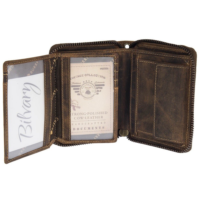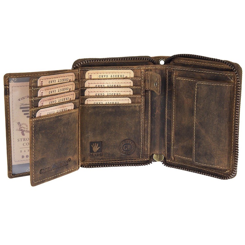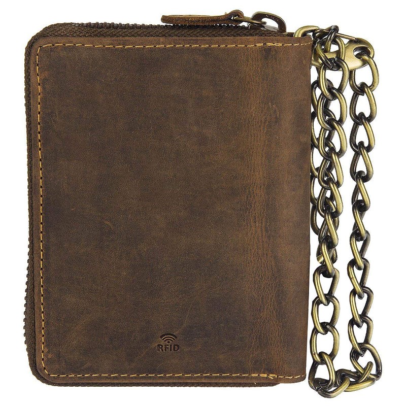 Greenburry Vintage RFID Leather Zip Wallet Biker Wallet with Chain BV-821A-25, brown