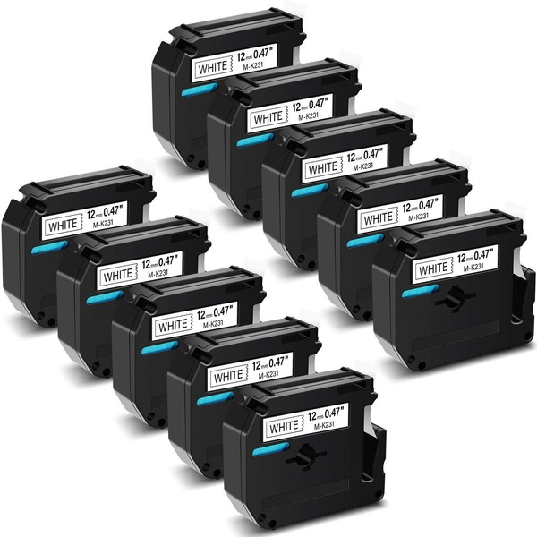 - What's in the box – 10 Pack Greencycle Compatible for Brother P Touch M Tape M231 MK231 M-K231 MK-231 Black on White Non-laminated standard adhesive tapes Replace for P-Touch Label Makers. Color: Black Text on white Background; Width: 12mm 1/2 inch (0.47"), Length: 26.2 feet (8 meter) each