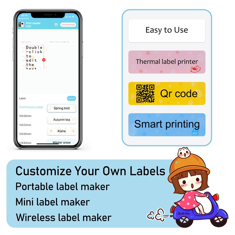 1. One-click printing Smart App. 2. 50+ label style. 3. Portable & Mini