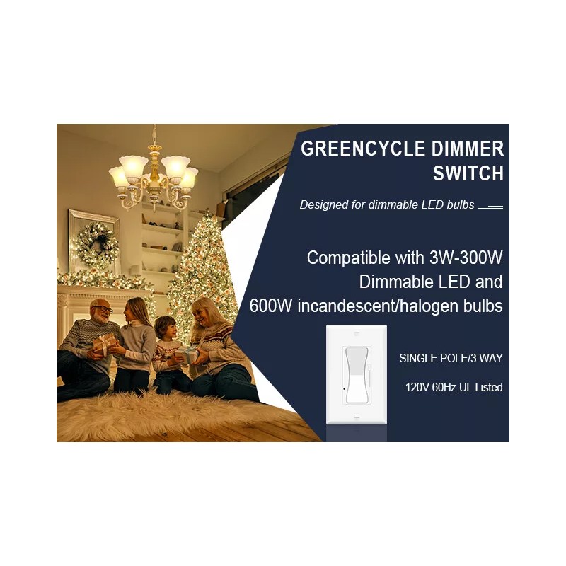 GREENCYCLE Decora Dimmer Light Switch Single Pole / 3-Way - LED / 600W Incandescent 4Pack