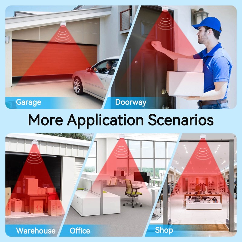 • ⚡Expandable Wireless Home Security - Flexible design according to your actual needs. You can choose the quantity of transmitter and receiver as you like, which can be freely matched and set special lights or ringtones with each other. Each receiver of this motion sensor detects alarm and can work with 32 motion sensors and 8 remotes at most.