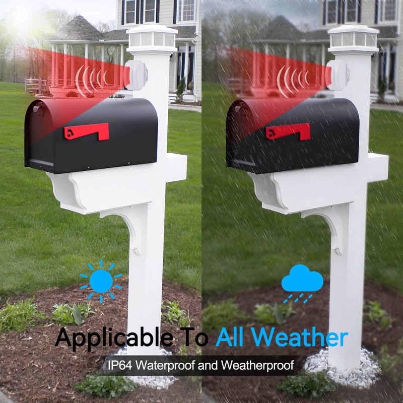 The detector itself features IP64 waterproof design, making it suitable for various applications such as eaves, outdoor mailboxes, driveways, garages, and more.
