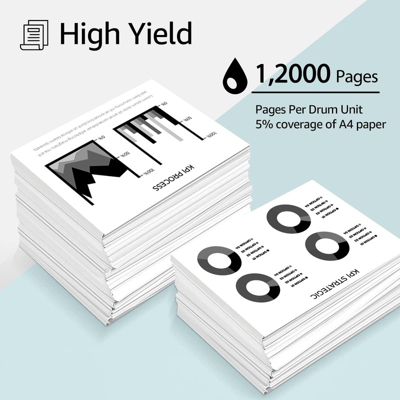 - Page Yield: Up to 12,000 pages per drum unit (based on 5% coverage of Letter size Paper).