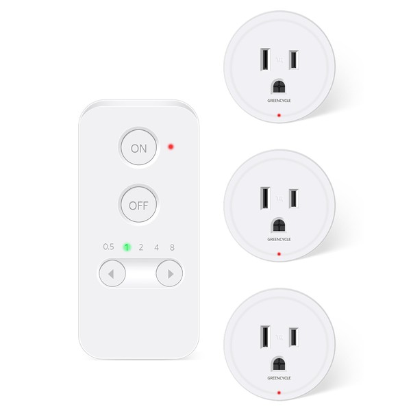 Greencycle Remote Control Outlet Plug, Remote Light Switches Wireless Indoor, Outlet Timer Indoor, No Interference No Wiring, 15A/1500W, 500ft RF Range, Compact Design, Programmable, 1Switch 3Outlets