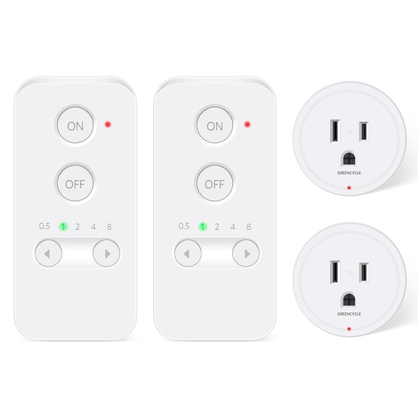 Greencycle Remote Control Outlet Plug, Remote Light Switches Wireless Indoor, Outlet Timer Indoor, No Interference No Wiring, 15A/1500W, 500ft RF Range, Compact Design, Programmable, 2Pcs