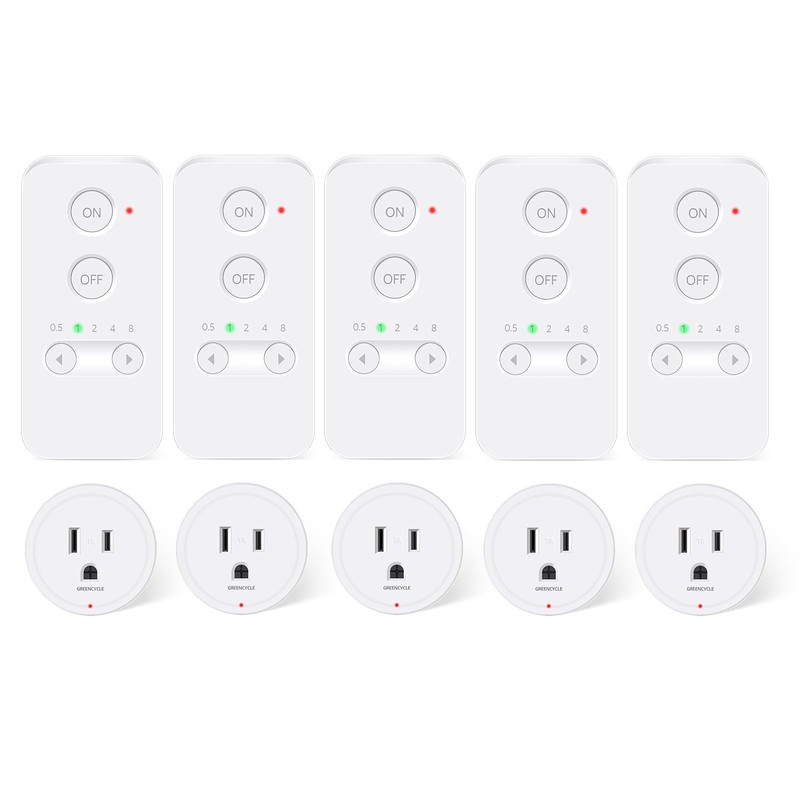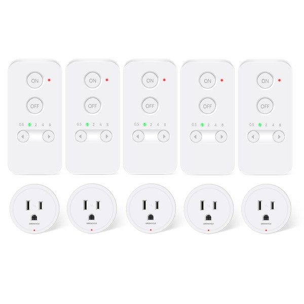 Greencycle Remote Control Outlet Plug, Remote Light Switches Wireless Indoor, Outlet Timer Indoor, No Interference No Wiring, 15A/1500W, 500ft RF Range, Compact Design, Programmable, 5Pcs