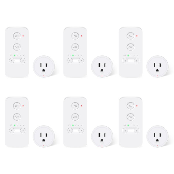 Greencycle Remote Control Outlet Plug, Remote Light Switches Wireless Indoor, Outlet Timer Indoor, No Interference No Wiring, 15A/1500W, 500ft RF Range, Compact Design, Programmable, 6Pcs