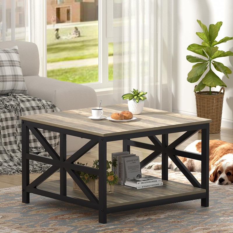 GreenForest GreenForest Coffee Table with 2-Piece Tabletop, Small Square Cent...