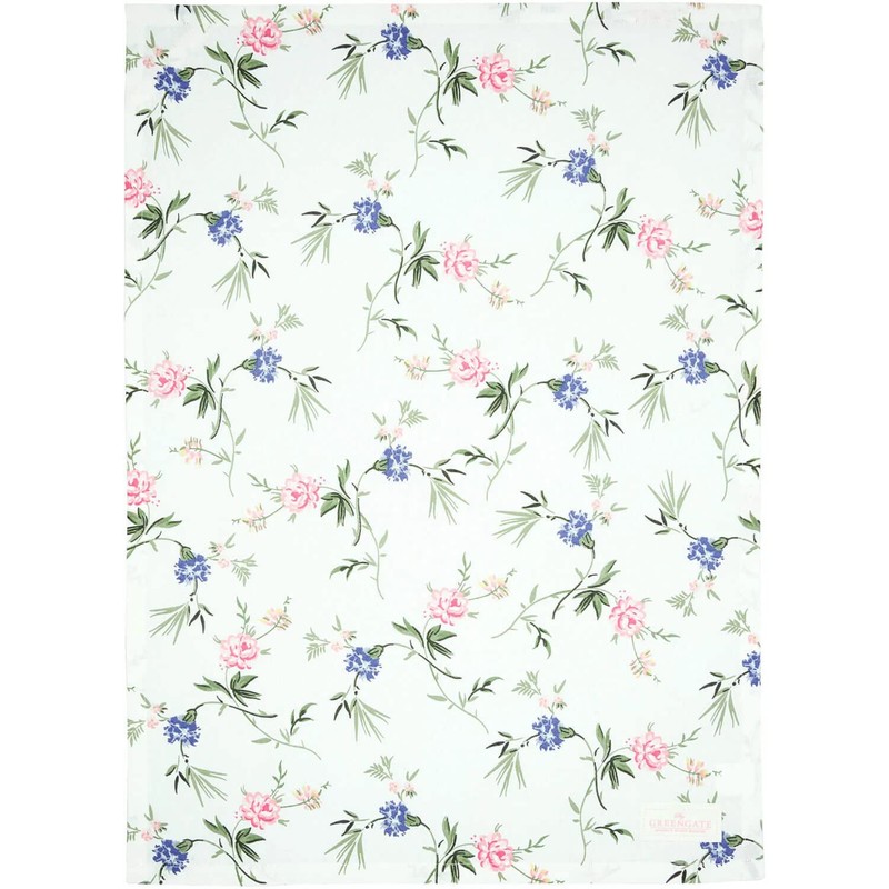 GreenGate Henriette White Cotton Tea Towel 50 x 70 cm Floral Pattern