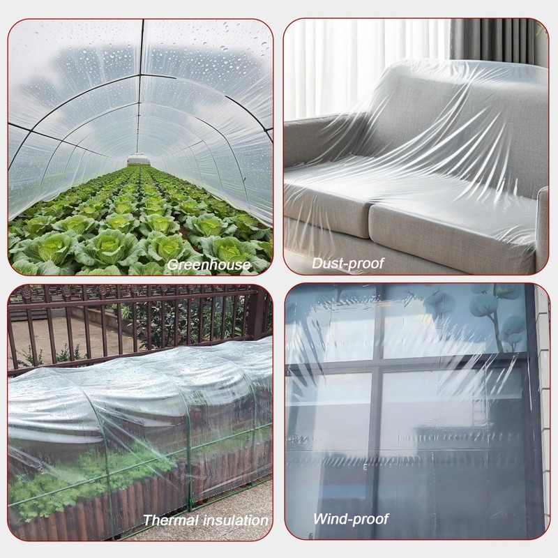 - Appearance: the clear and transparent nature of our plastic sheeting allows for maximum light transmission, creating a bright and nurturing environment for your plants. the crystal-clear clarity not only promotes healthy growth but also allows you to easily monitor your plants without having to compromise their protection.