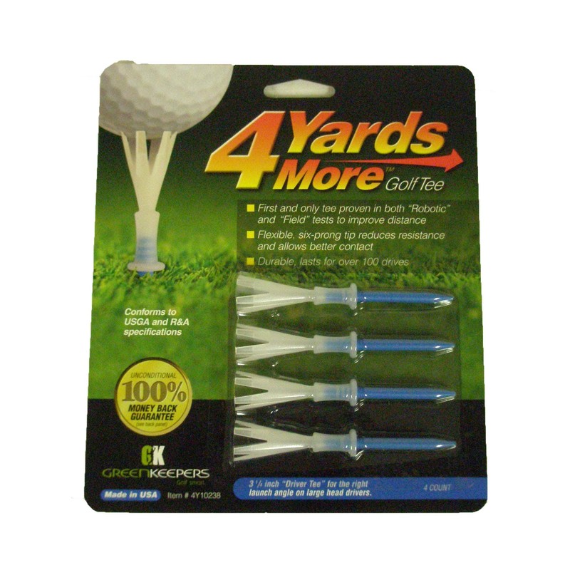 - 4 More Yards Golf Tees (4pk, 3 1/4" Blue) GreenKeepers NEW