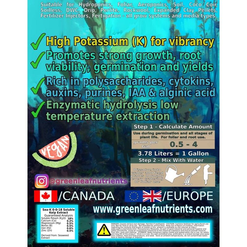 Organic Sea-K for Plants Seaweed and Kelp Fertilizer Supplement Concentrated Extract Powder Nutrient