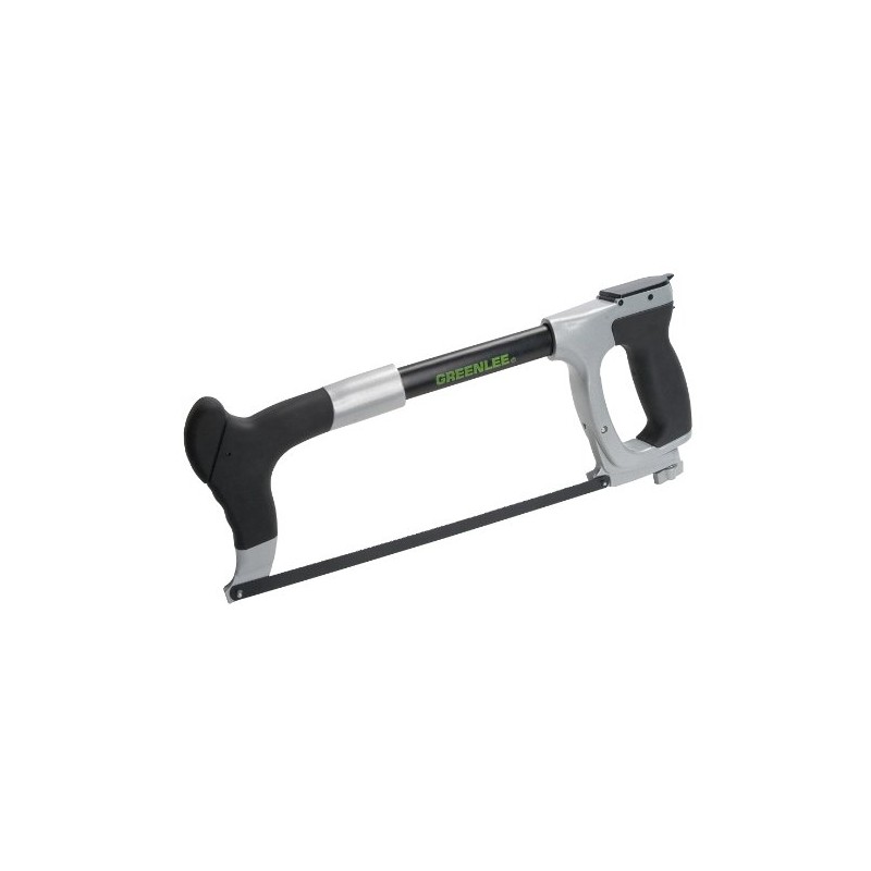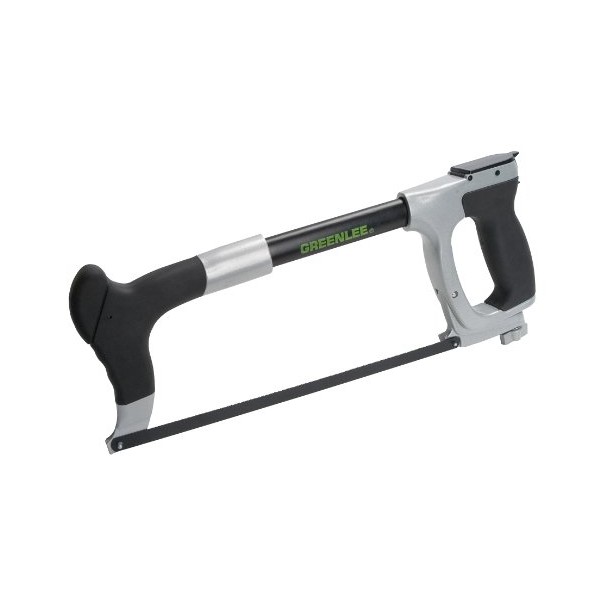 Greenlee’s die cast aluminum hacksaw has a large throat enabling deeper cut and makes handling easy. The heavy duty die cast aluminum handle is virtually break proof with a tubular back allowing for blade storage. Bimetal blade design for long cutting life.