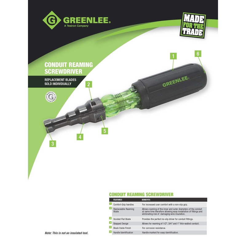 Greenlee 9753-11C Conduit Fit Scrwdrvr, 1/2, 3/4, 1EMTx2-1/2