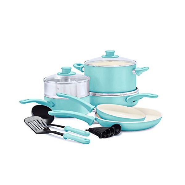 GreenLife Soft Grip Healthy Ceramic Nonstick Turquoise Cookware Pots and Pans Set, 12-Piece