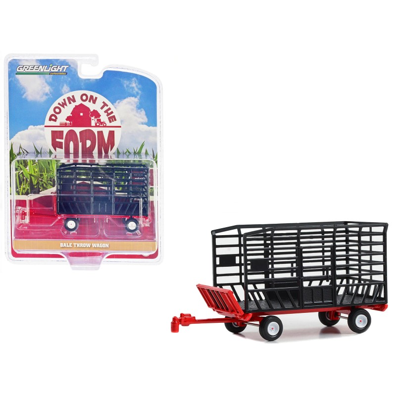 Greenlight DCD Bale Throw Wagon 8 1/64 Diecast Model in Black and Red "Down on the Farm" Series by Greenlight