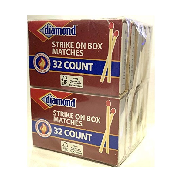10 Boxes of 32 Count Diamond Wooden Strike On The Box Matches. America’s match company since 1881. New look, same great product. GreenLight - sourced from responsible forests.
