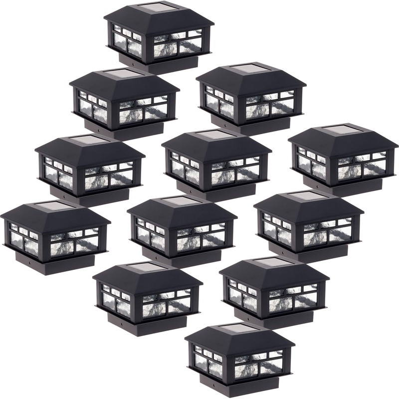 GreenLighting 12 Pack Modern Design Solar Powered 10 Lumen Post Cap Light for 4x4 or 5x5 Posts (Black)