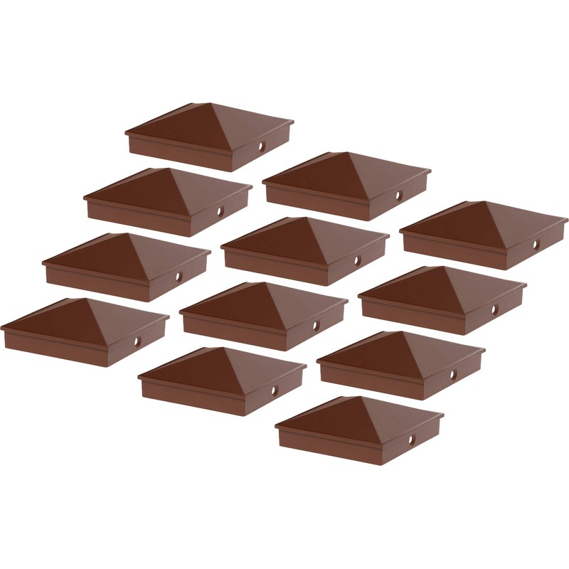 GreenLighting 4x4 Aluminum Pyramid Post Cap Cover for Nominal Wood Posts (Brown, 12 Pack)