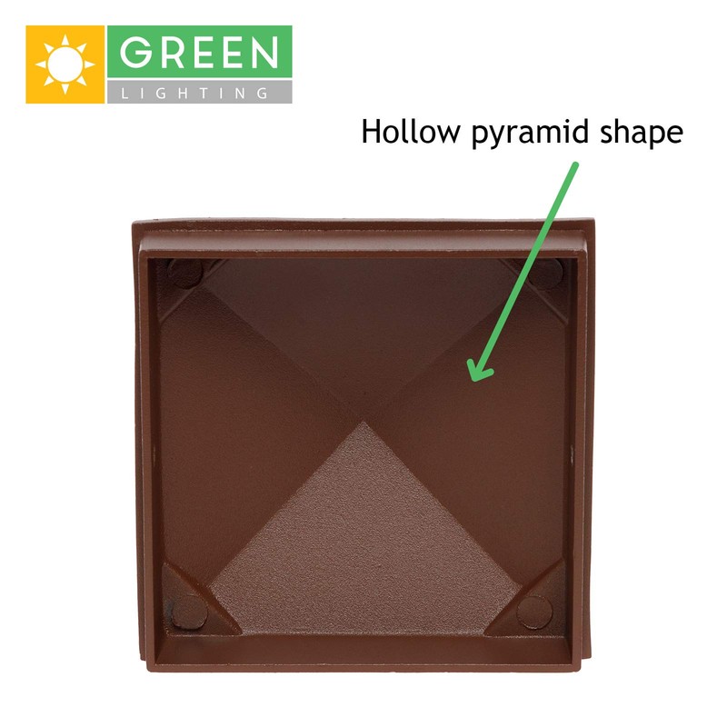 - DESIGNED FOR WOOD POSTS - Designed to specifically fit on a 4 x 4 nominal wood post, the GreenLighting Aluminum Pyramid Post Cap is your one-stop solution for dressing up those plain fences. Not suitable for PVC or Vinyl posts.