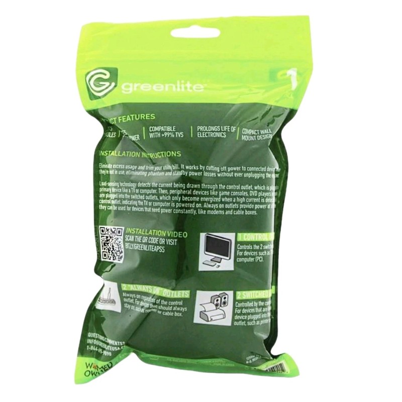 Greenlite 5 Outlet Advanced Power Strip Tier1 Wall Mount Smart Surge Protector