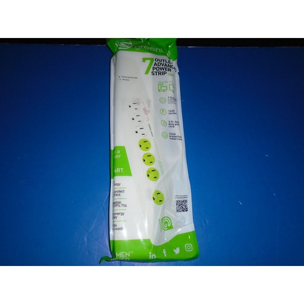 Greenlite 7-Outlet Advanced Power Strip, Energy Saving Surge Protection
