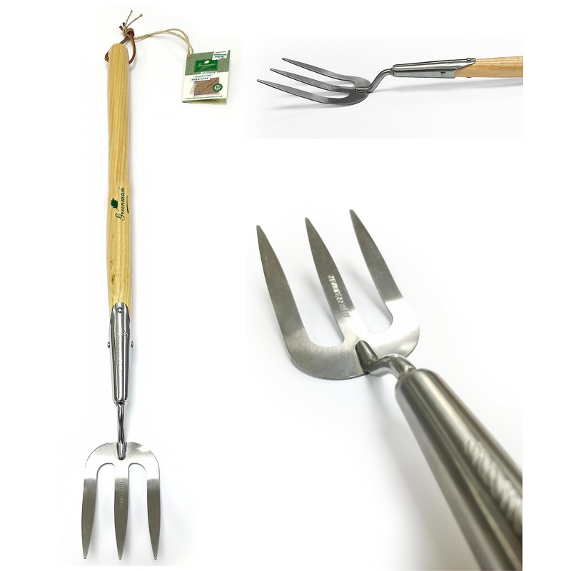Greenman Mid Handle Stainless Steel Weed Fork Ash Handled 28"