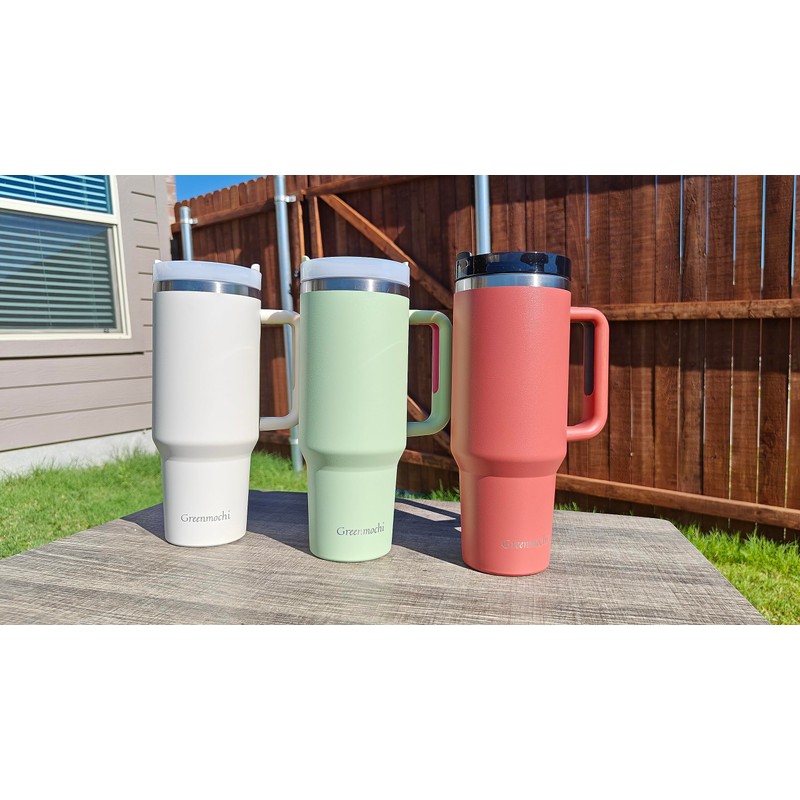 Greenmochi 40 oz Tumbler with Handle, Stainless Steel Double Wall Vacuum Insulated Tumbler with Handle and Straw, BPA-Free Li, Gifts for Men and Women, Keep Cold/Hot Drinks for hours (Mint)