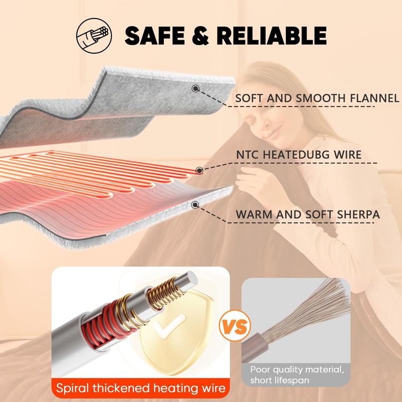 - 【Heating Settings upgrade】 : Compared to the typical 3 - or 4-speed electric blankets on the market, our heating blankets have been upgraded to 10 heating Settings (86 ° F - 131 ° F) with 5 timing Settings (1,2,4,6,8 hours). No matter what age, no matter what occasion, you can choose the temperature setting and timing scheme that suits your needs, this is a very suitable heated blanket for adults