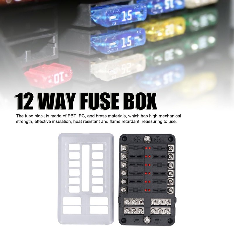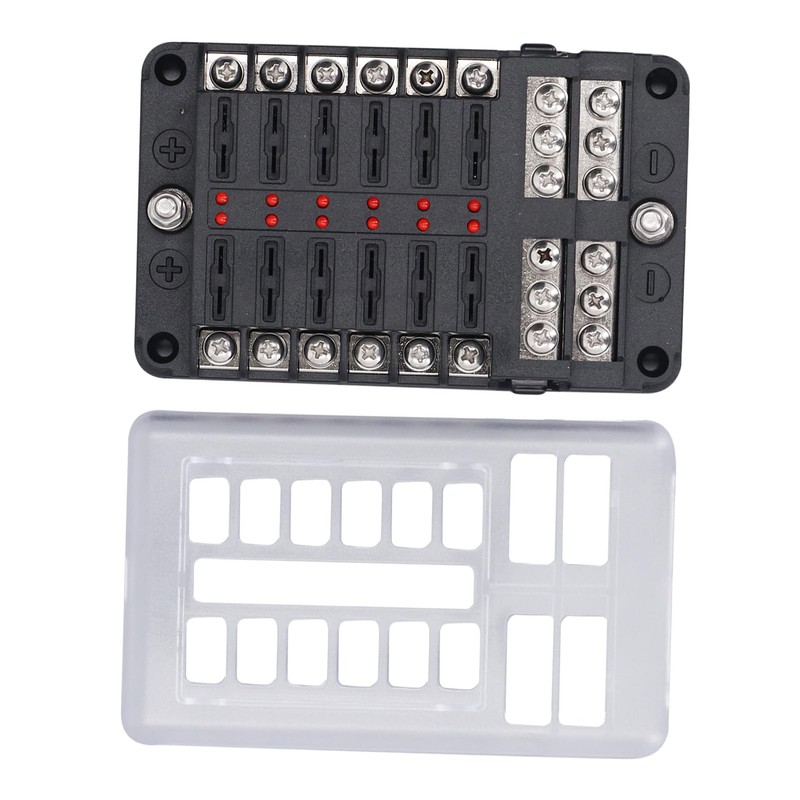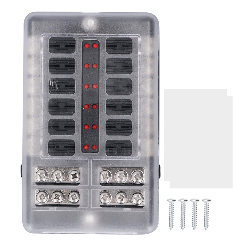 Greensen 12-Wege-Sicherungskasten, 32V Sicherungskastenhalter mit Roter LED-Anzeige Wasserdichte Abdeckung Sicheres PBT-Material für Auto LKW Boot Wohnmobil Anhänger