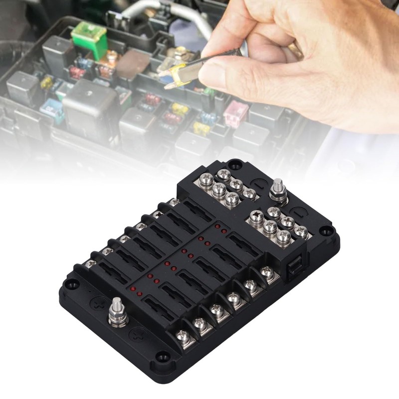 - [Sofortige Sicherungserkennung] Diese 12-fach-Sicherungsbox verfügt über eine hellrote LED-Anzeige, die sofort aufleuchtet, wenn eine Sicherung durchgebrannt ist, sodass Sie defekte Sicherungen schnell identifizieren und ohne Verzögerung ersetzen können. Das klare visuelle Warnsystem stellt sicher, dass Ihre elektrischen Systeme mit minimalen Ausfallzeiten betriebsbereit bleiben.