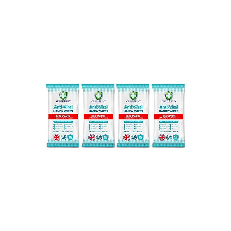 GreenShield Anti-Viral Handy Wipes 15's Kills 99.9% of Bacteria (4 Pack)