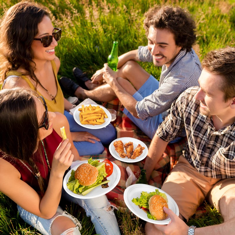 - MATERIAL: This paper plates made of 100% sugarcane fiber, that is a biodegradable, Eco-friendly and renewable material. After using you can toss these disposable biodegradable plates into the compost bin.