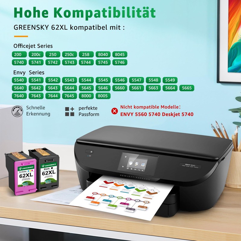 Manufacturer: GREENSKY für HP 62XL Druckerpatronen (NICHT OEM)