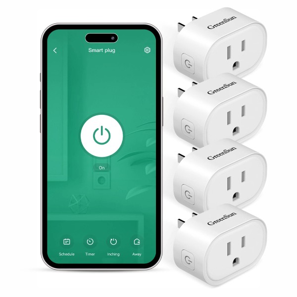 GreenSun WLAN Smart Plug Alexa Google WiFi Socket Wireless Remote Control Timer - 4 Packs