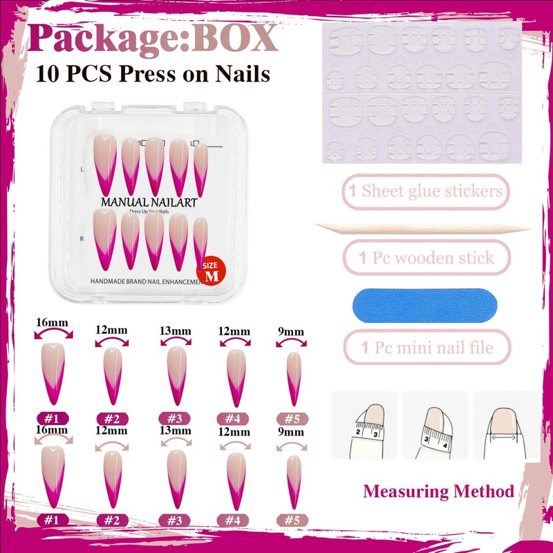- COMPLETE SET: Package includes 10 pieces of handmade press-on nails in size M, perfect for a full manicure application