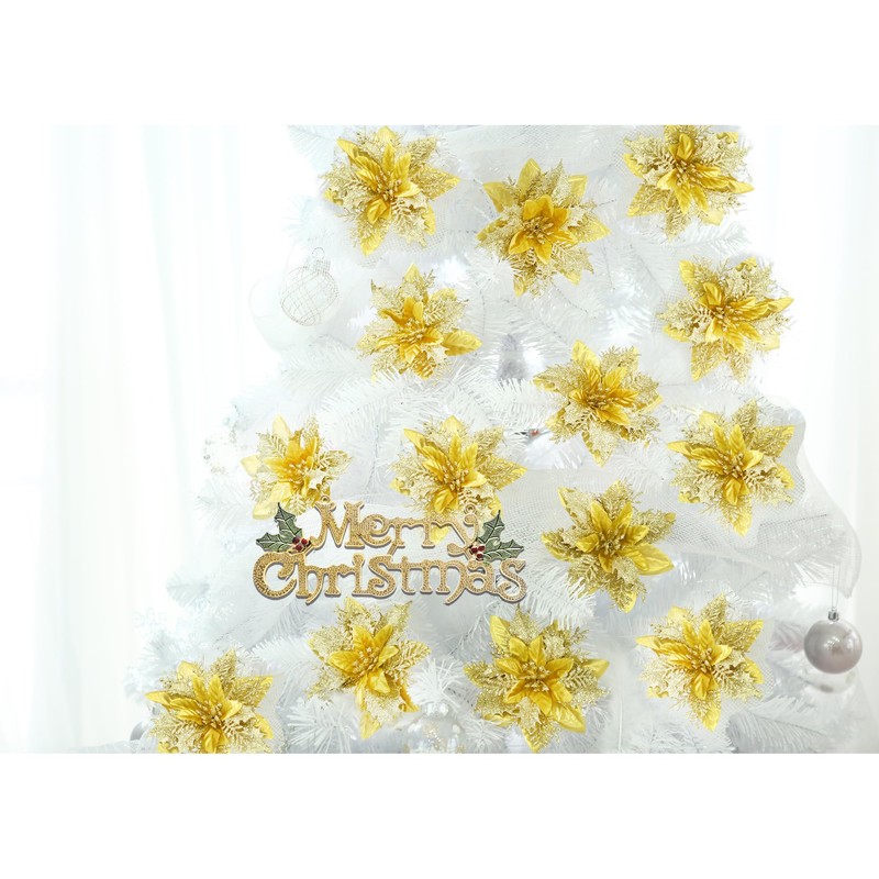 - Package Include: 12 pcs Christmas glitter poinsettia flowers + 12 pcs metal clips + 12pcs stems