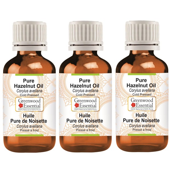 Greenwood Essential Natural Hazelnut Oil (Corylus avellana) Natural Pure Therapeutic Quality Cold Pressed (Pack of Three) 100 ml x 3 (10 oz)