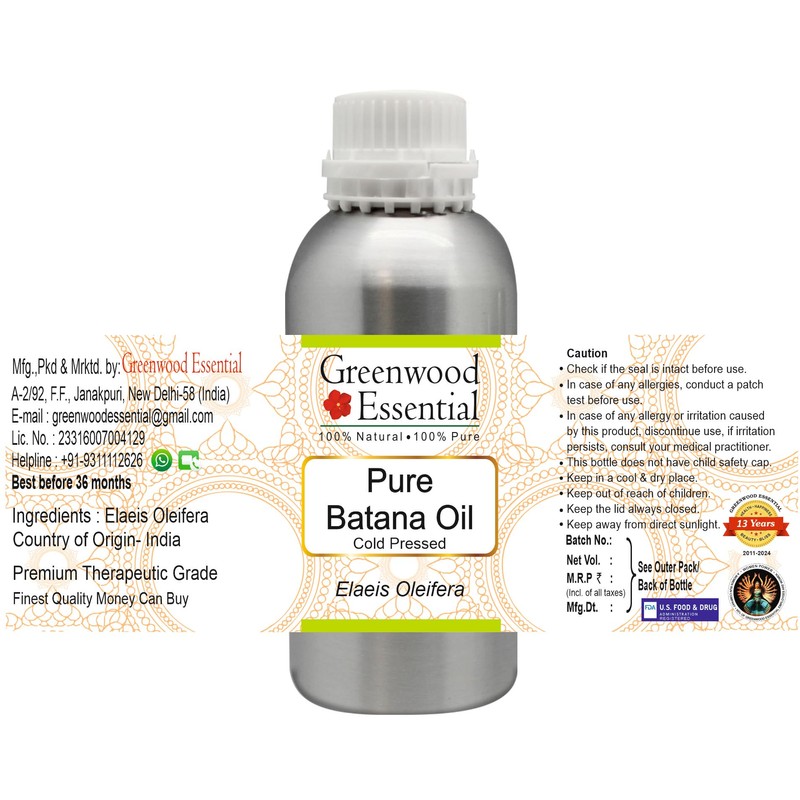 Greenwood Essential Pure Batana Oil (Elaeis Oleifera) Cold Pressed 300ml (10oz)