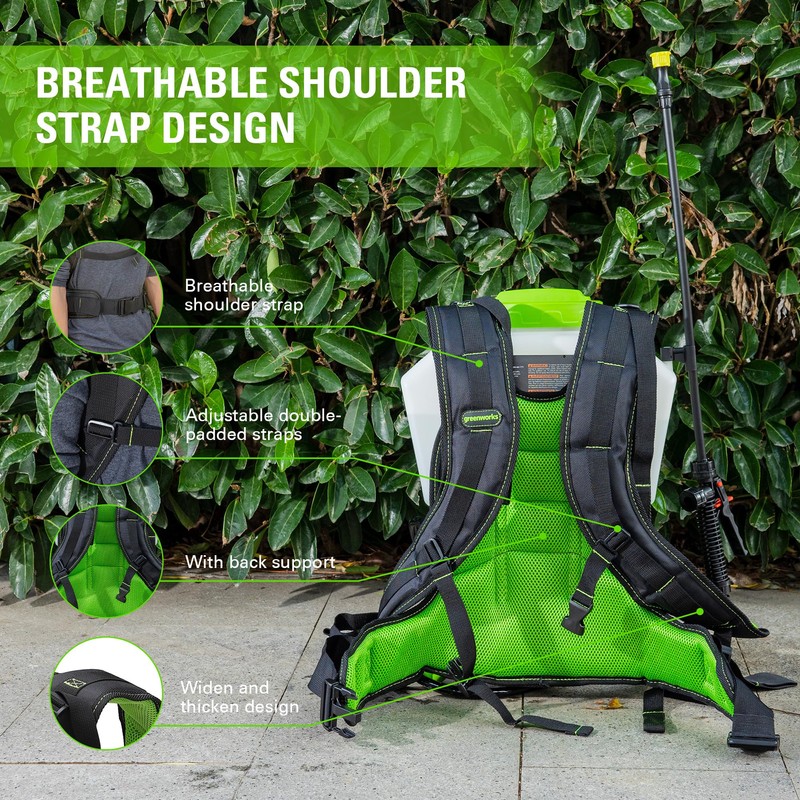 - 4 GALLON TANK & 60 GALLON PER CHARGE: Can spray about 60 gallons per charge with Greenworks 2.0Ah battery. Meet your need for all-day watering work.