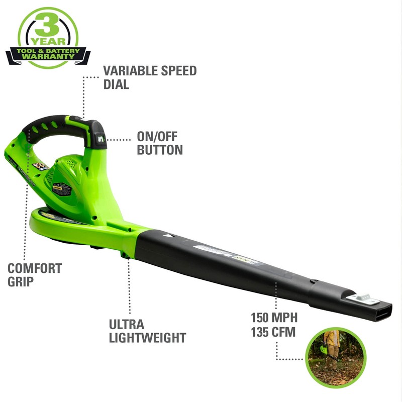 Greenworks 40V (150 MPH / 130 CFM / 75+ Compatible Tools) Cordless Leaf Blower, Tool Only