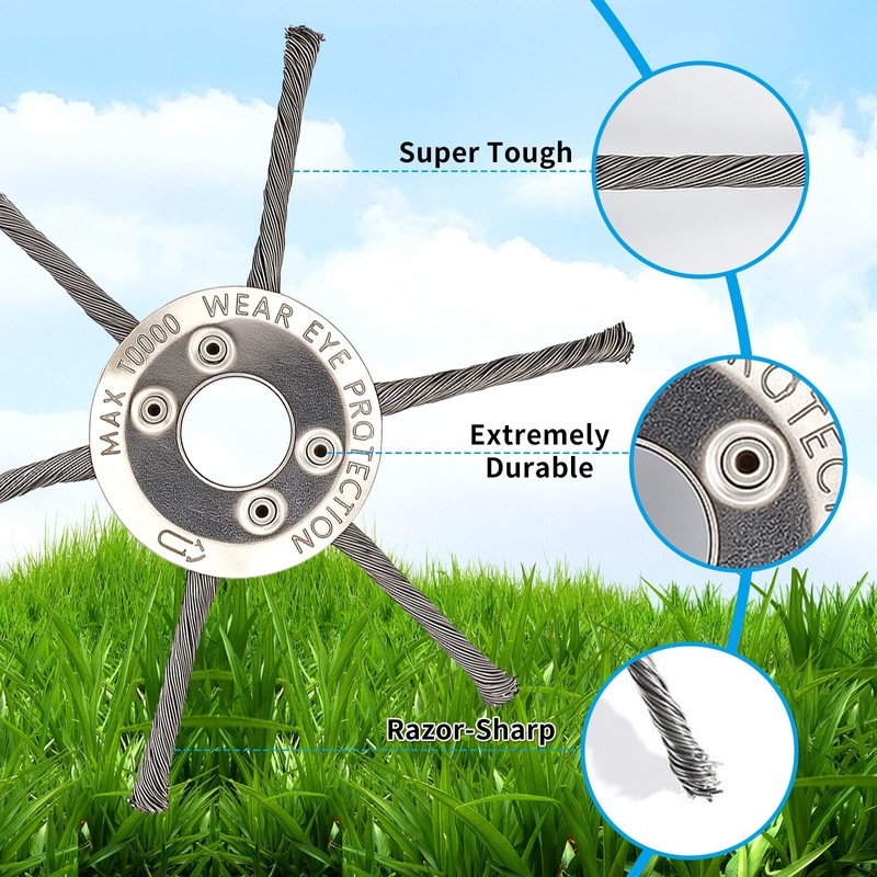 • Versatile Outdoor Use: Perfect for a variety of trimming tasks, this universal steel wire blade easily clears weeds from tight corners, brick gaps, sidewalks, sand, and gravel areas. It’s also effective for removing moss and rust, making it ideal for gardens, patios, driveways, and parking lots.