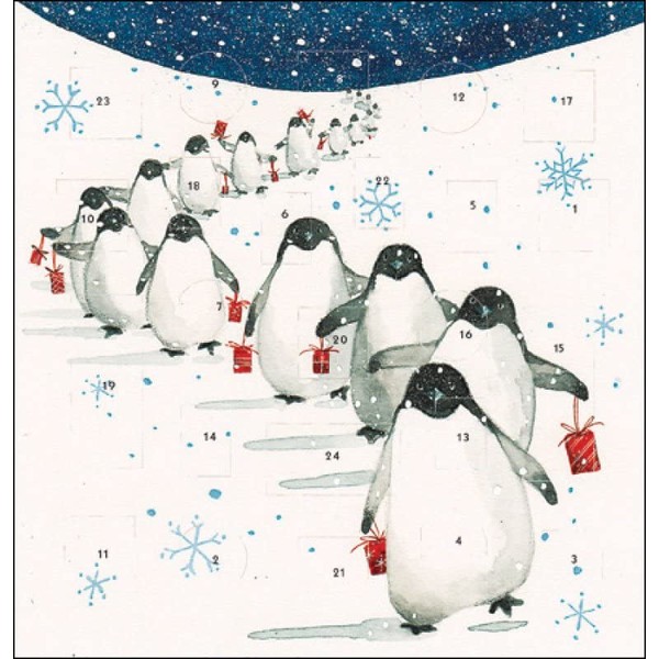 Greeting Card Traditional Penguins Christmas Advent Calendar Card, White