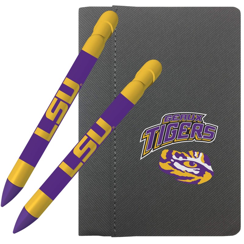 LSU Tigers Notebook and Message Pen Set: Comes with 1 LSU Notebook (4"X6") and 2 LSU Rotating Message Pens. Pens are 1mm ballpoint, retractable with black ink. Notebook contains lined pages. NCAA licensed. They are a great gift to LSU fans!
