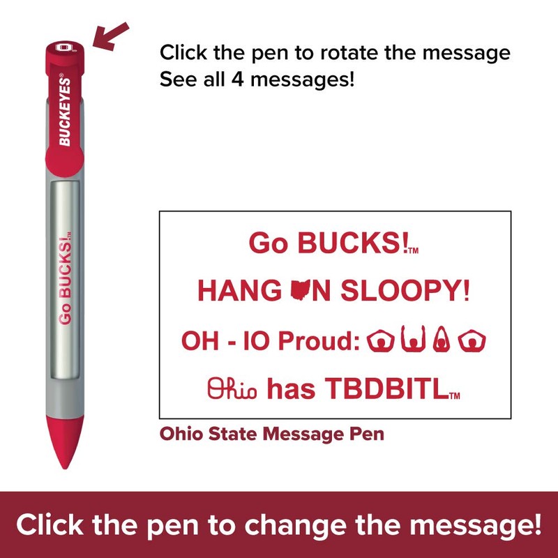 Ohio State Buckeyes Notebook and Message Pen Set: Comes with 1 Ohio State Notebook (4"X6") and 2 Ohio State Rotating Message Pens. Pens are 1mm ballpoint, retractable with black ink. Notebook contains lined pages. NCAA licensed. They are a great gift to Ohio State fans!