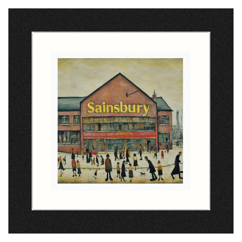 Greetingles Lowry-Style 12"/31cm Square Framed Print. Beautiful Black Ash Frame (Lowry, Sainsbury)