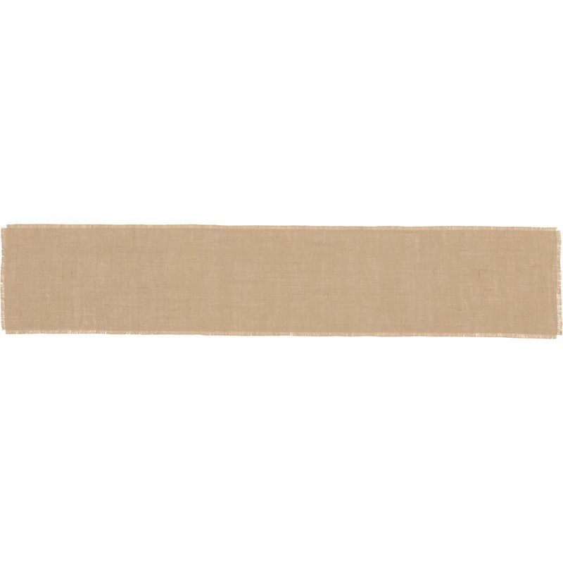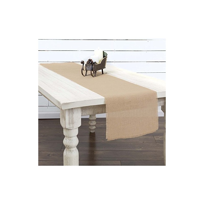 - FRAYED EDGING: A delicate frayed edging surrounds the simple table runner for a rustic look.