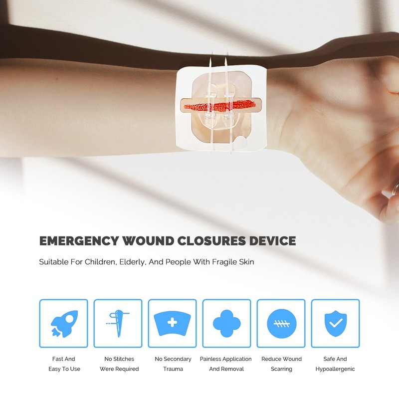 - 【Easy to Use and Remove, Reliable】With our wound closure device, you can easily, quickly and non-traumatically close the cut wherever you are, and you can peel the device like a dressing from the skin after healing. It can be counted on in emergencies and save time when every second counts.