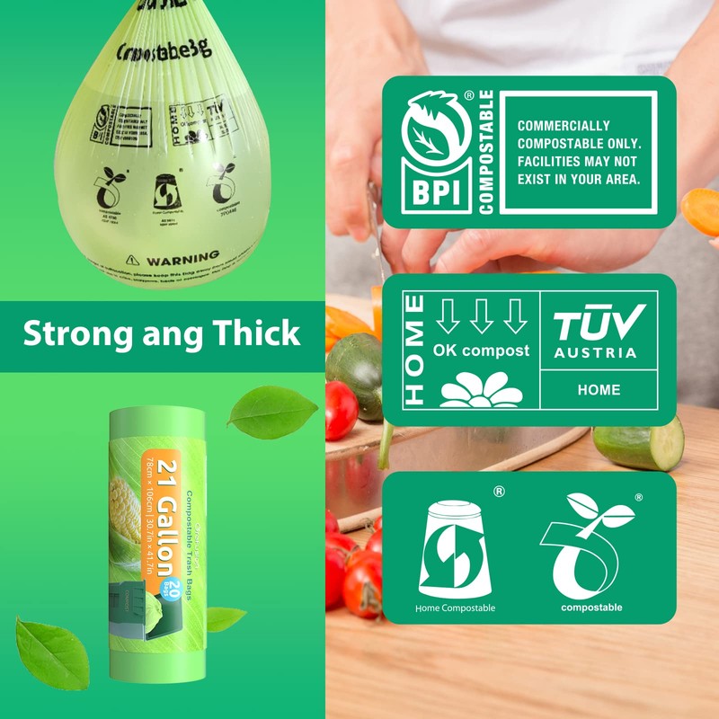 - đăFOR FOOD WASTE&YARD WASTE&ORGANIC WASTE RECOVERYăThe GreFusion compostable trash bag size of 21 gallon are great for compost bin kitchen to collect food scraps,also can be used as kitchen trash bags, yard waste bags .The large compost bags are perfectly fit most large compost can design with star-sealed at the bottom. Kitchen compost bags are extra thick 1.28 Mils, durability leave no space to leak and not easy to tear.