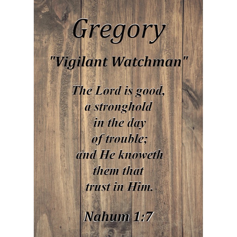 Gregory "Vigilant Watchman" Keepsake Name Meaning Card with Bible Verse